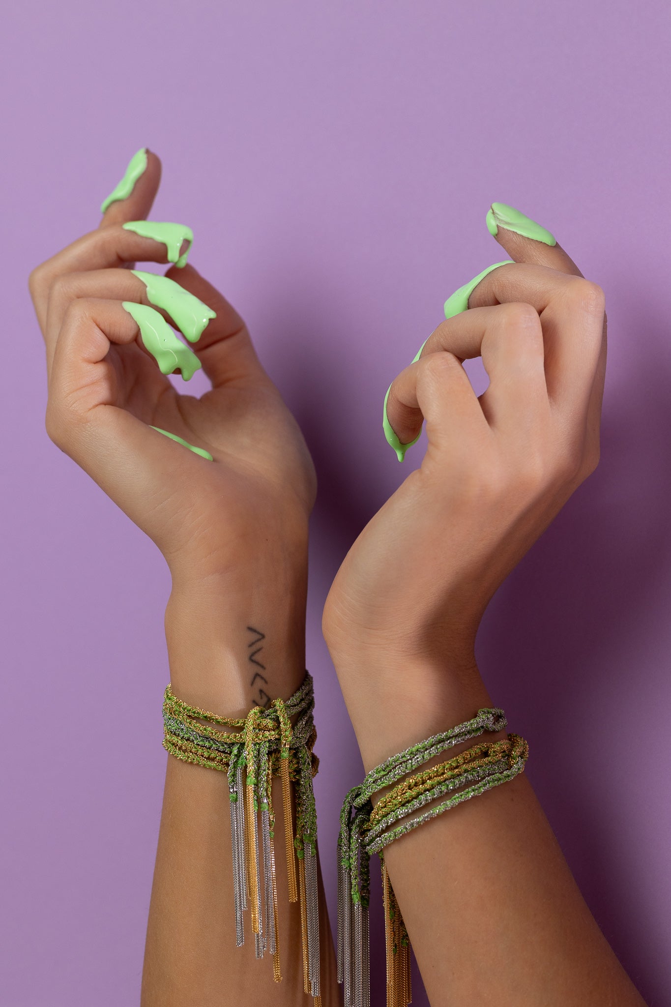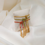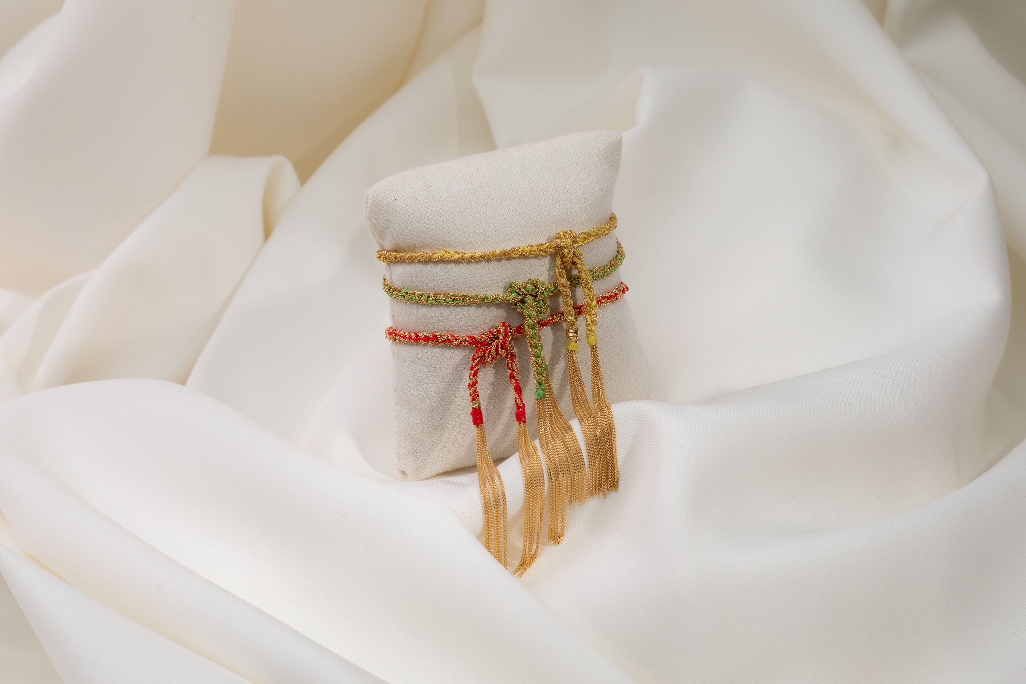 - Be gentle when putting on and taking off the bracelet to prevent stretching or tearing of the silk.