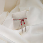 - Store the bracelet in a dry, cool place away from direct sunlight to prevent tarnishing of the silver and fading of the silk.