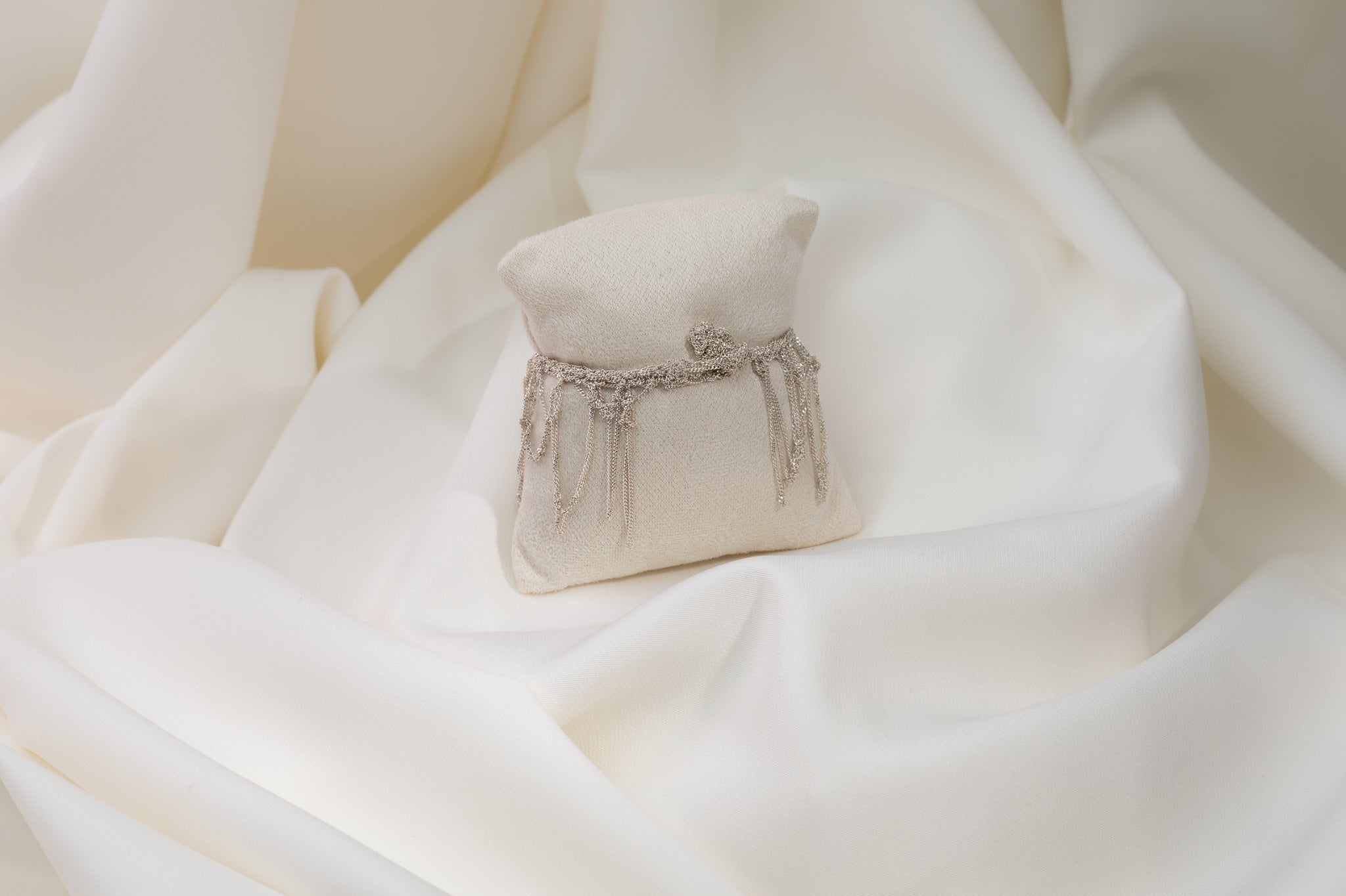 - Store the bracelet in a dry, cool place away from direct sunlight to prevent tarnishing of the silver and fading of the silk.